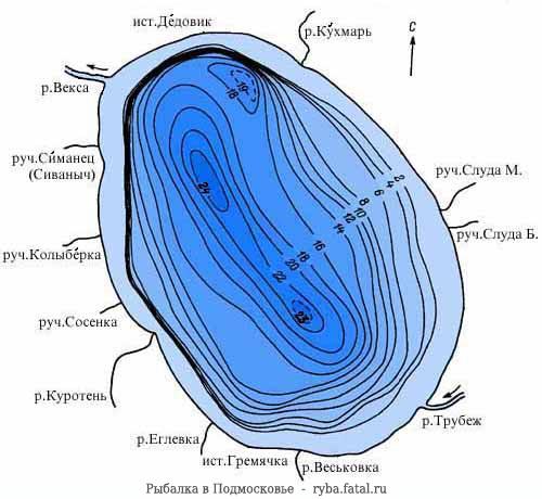 лесом. Глубины от полутора до десяти метровq виды рыб - обычные для